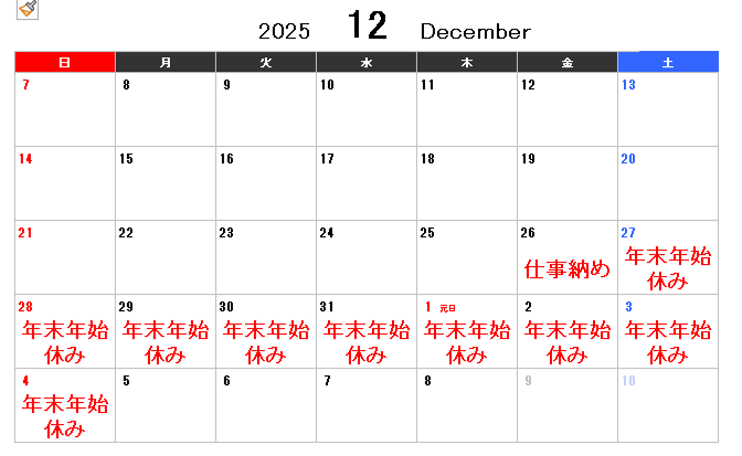 早いもので2025年もあと1ヶ月を切りましたね。ひだまりの年末年始の予定ですが、